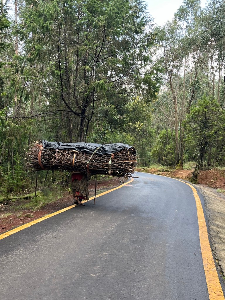 We saw a woman carrying a huge pile of sticks on her back. She walked with cane and limped too. We could not believe how strong she is. That was inspiring.