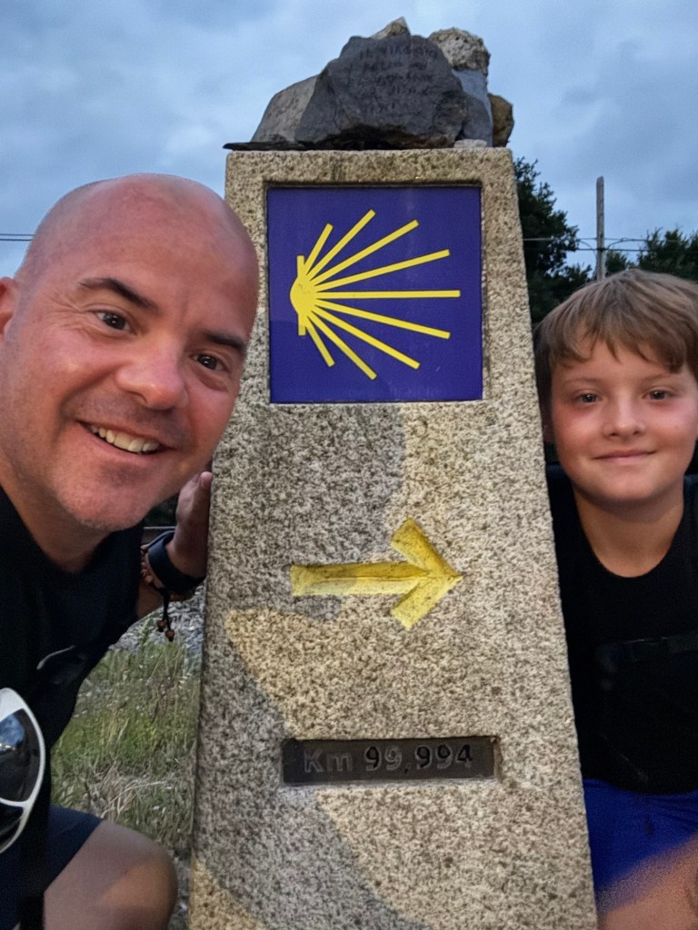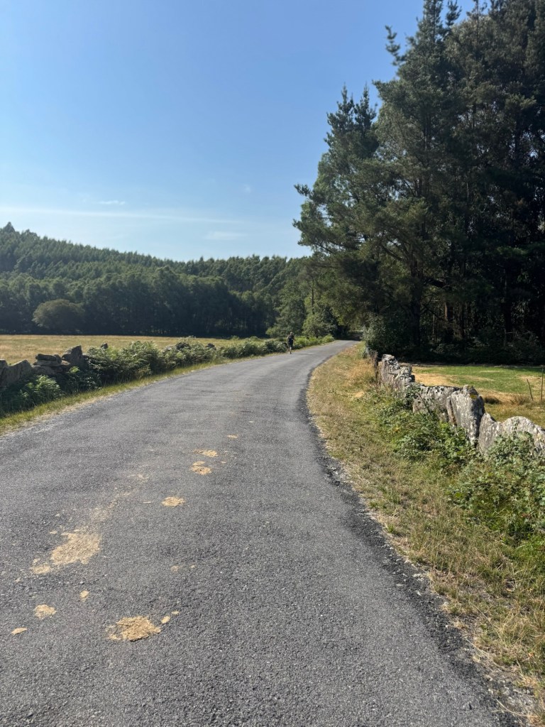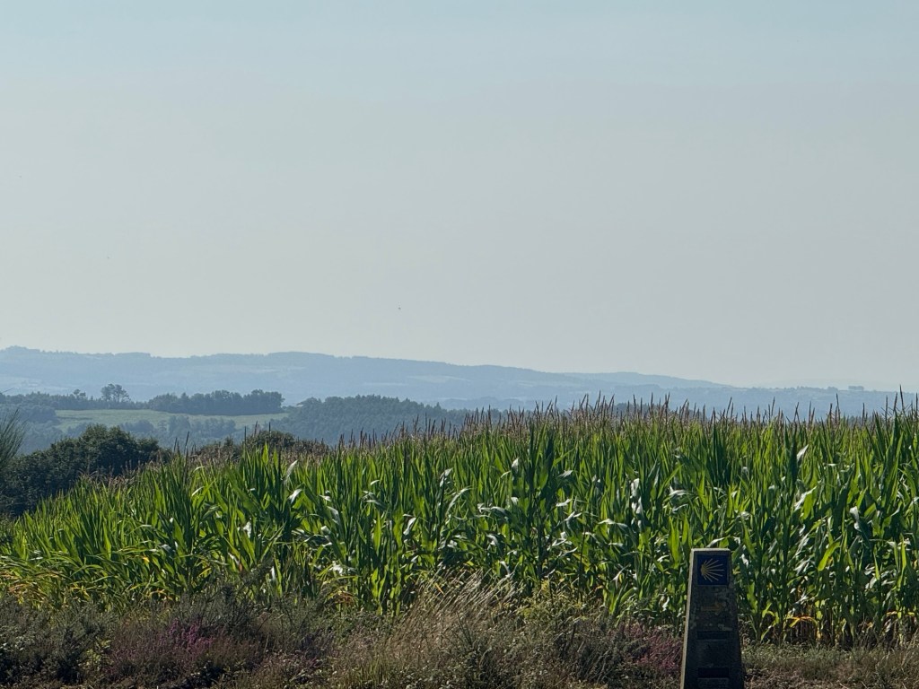 We left with the early morning sunrise today. An all night concert in the field next to our hostel made for a short evening. Within a few steps we crossed a milestone on the Camino.