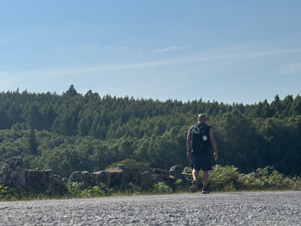 Today over our high mileage trek we reached the lush evergreen forests of the Camino. What glorious mountains they are! This day reminded me of our wonderful years in the Rocky Mountains of Colorado. I spent a lot of time hiking those mountains and the trails and the views and scents brought all those memorable hikes back into my mind. There is nothing better than the whisper of the wind and the fresh evergreen scent surrounding you as you walk. As we journeyed onward Psalm 121 led the way.