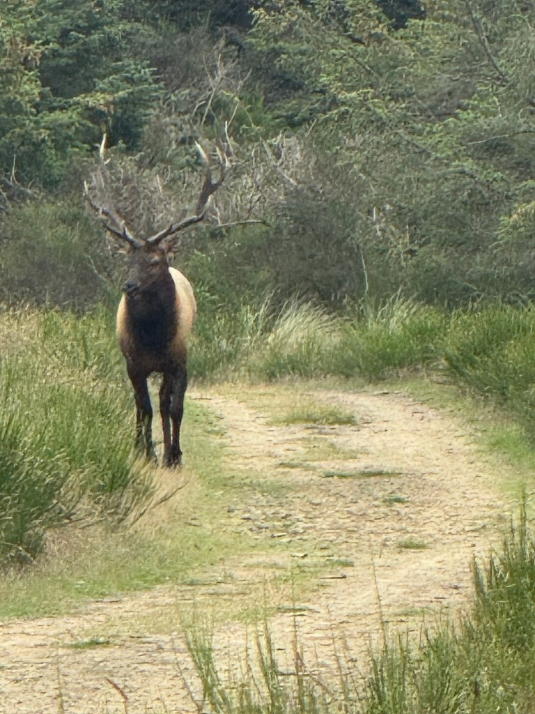 I awoke early to go on a long Camino like walk of 13.2 miles. The ocean air and evergreens were accompanying me the whole way. I also ran into this guy.
