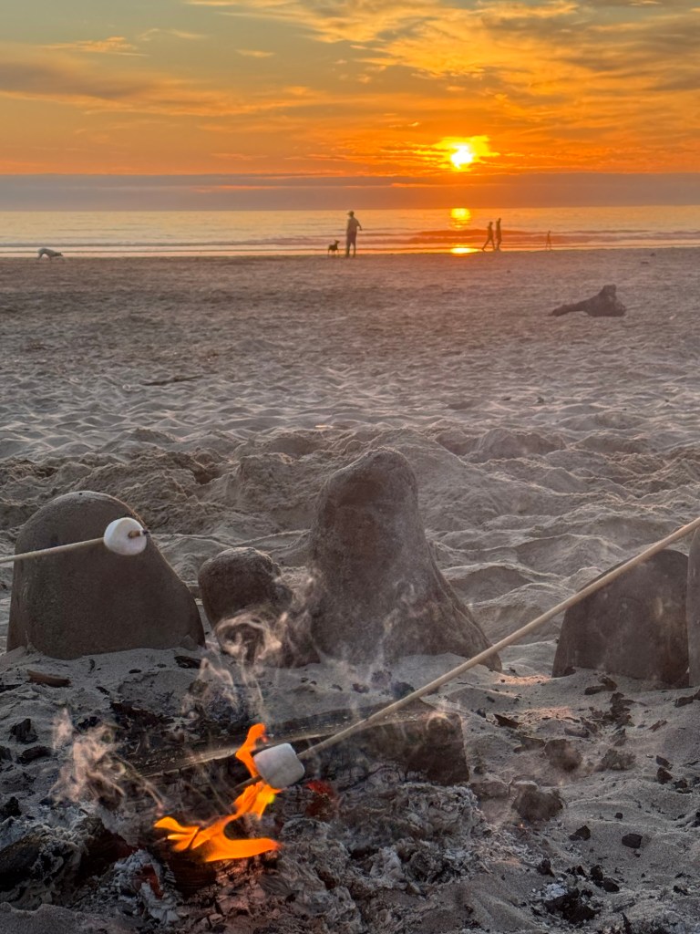 After a slower paced afternoon of being together in the sun on the beach, an evening campfire of smores warmed our hearts and tummies.